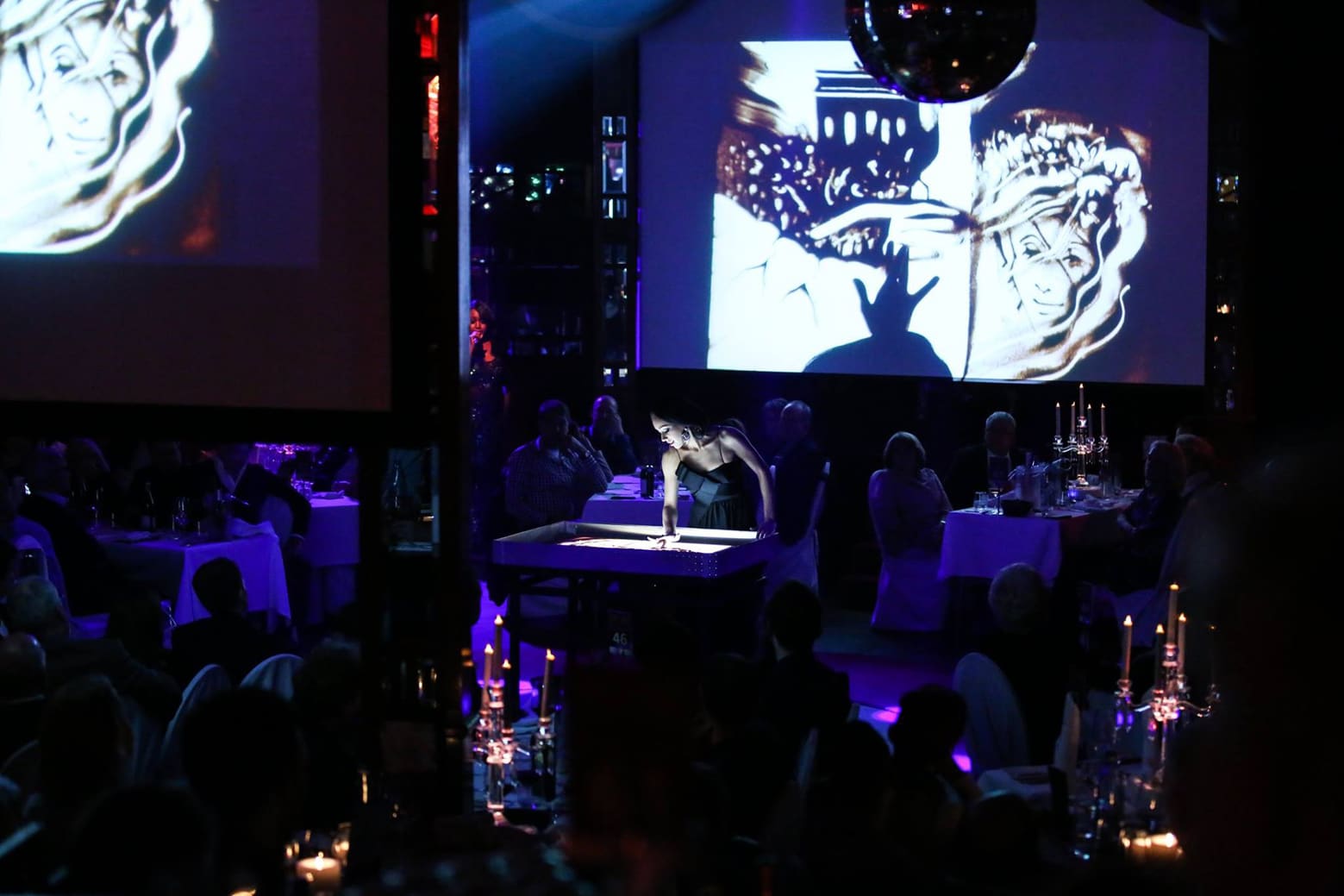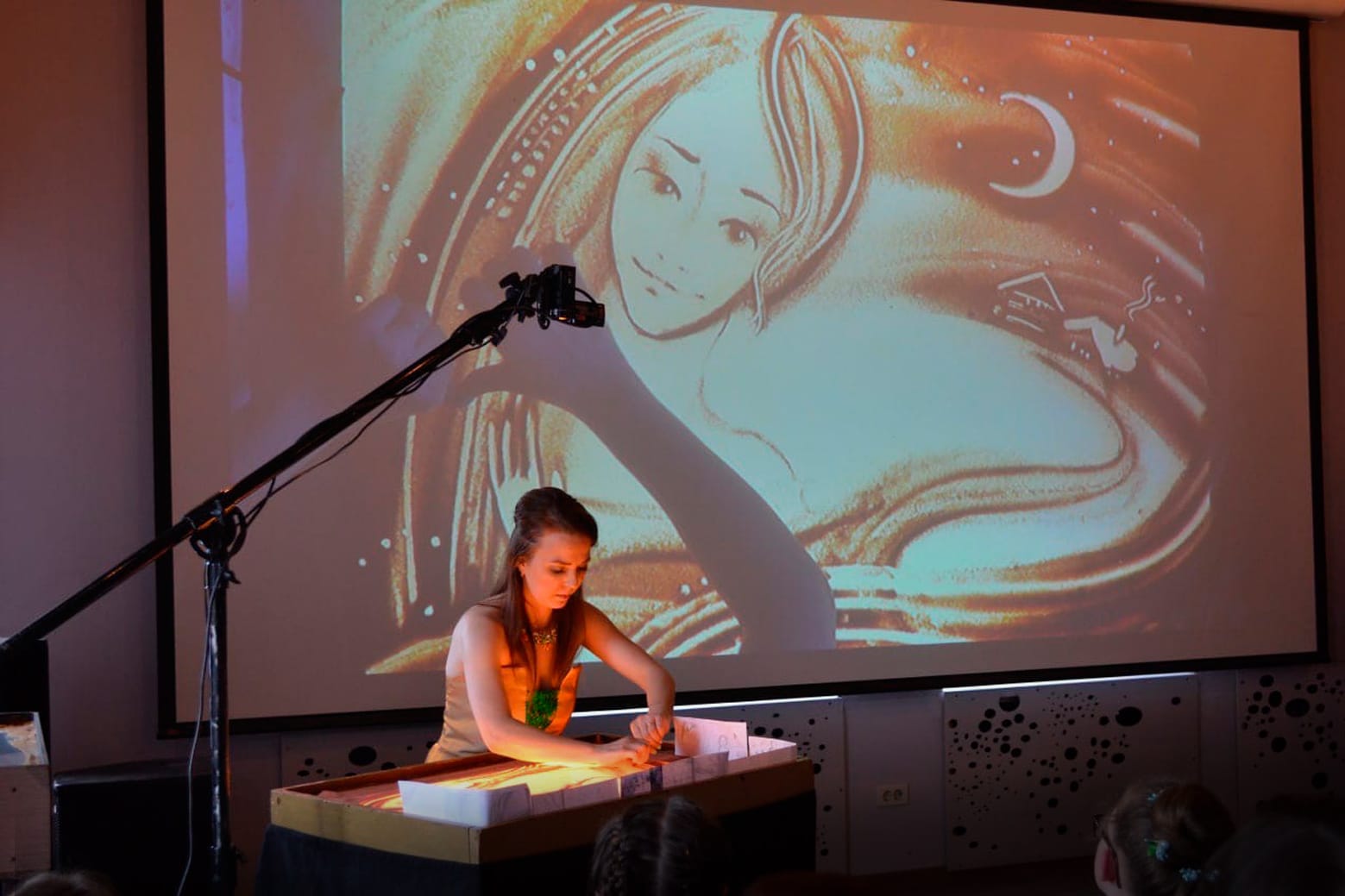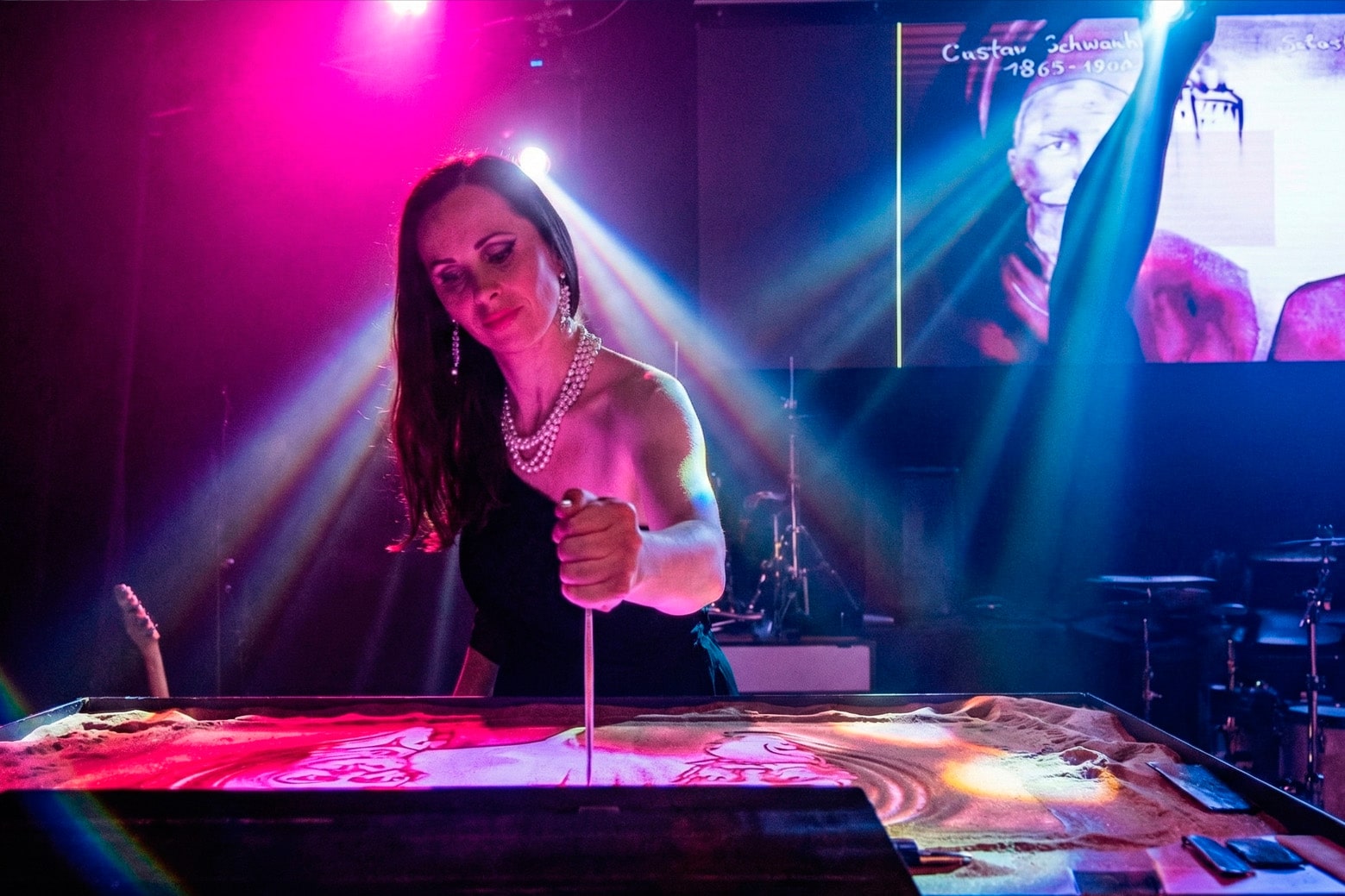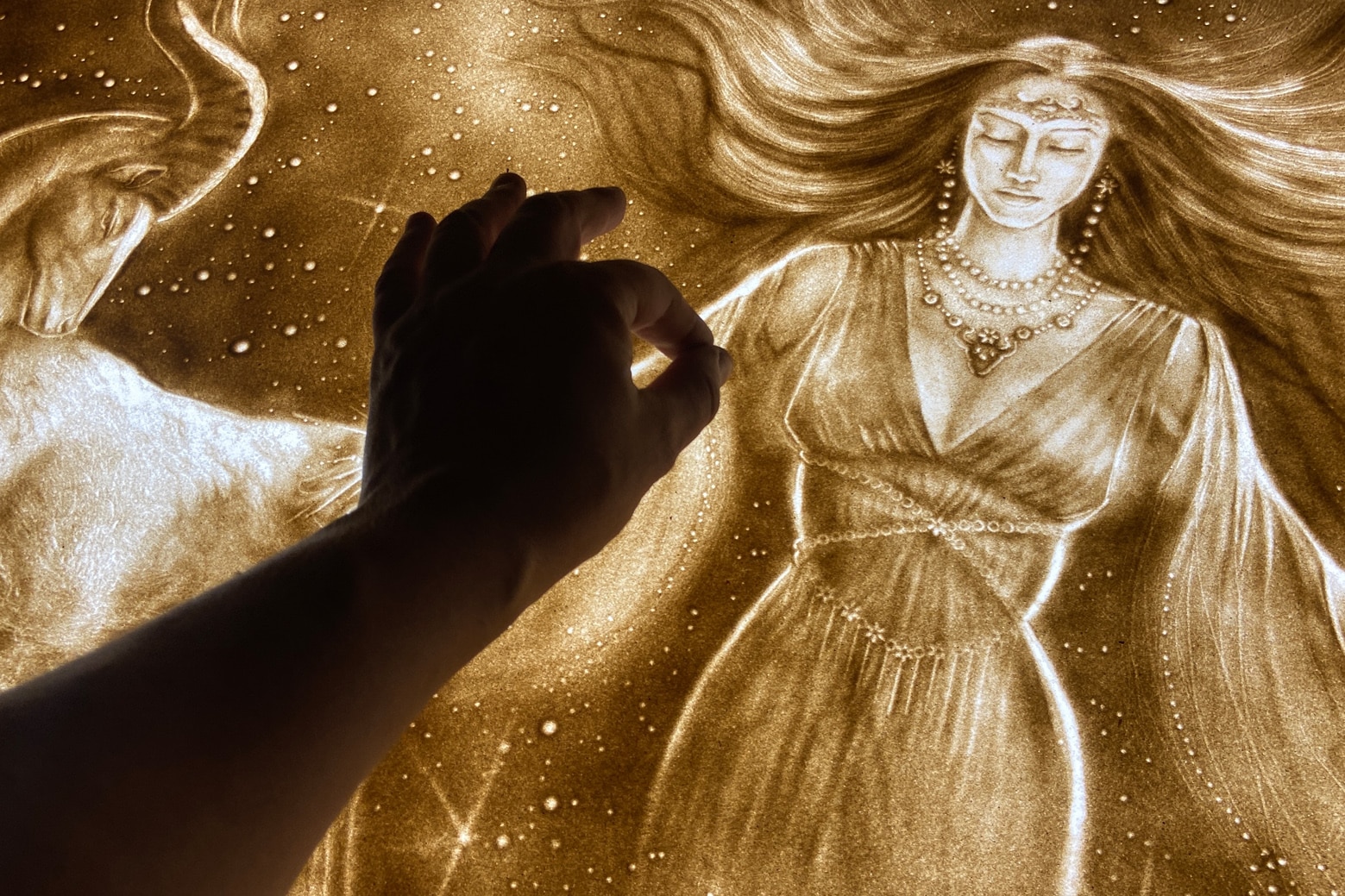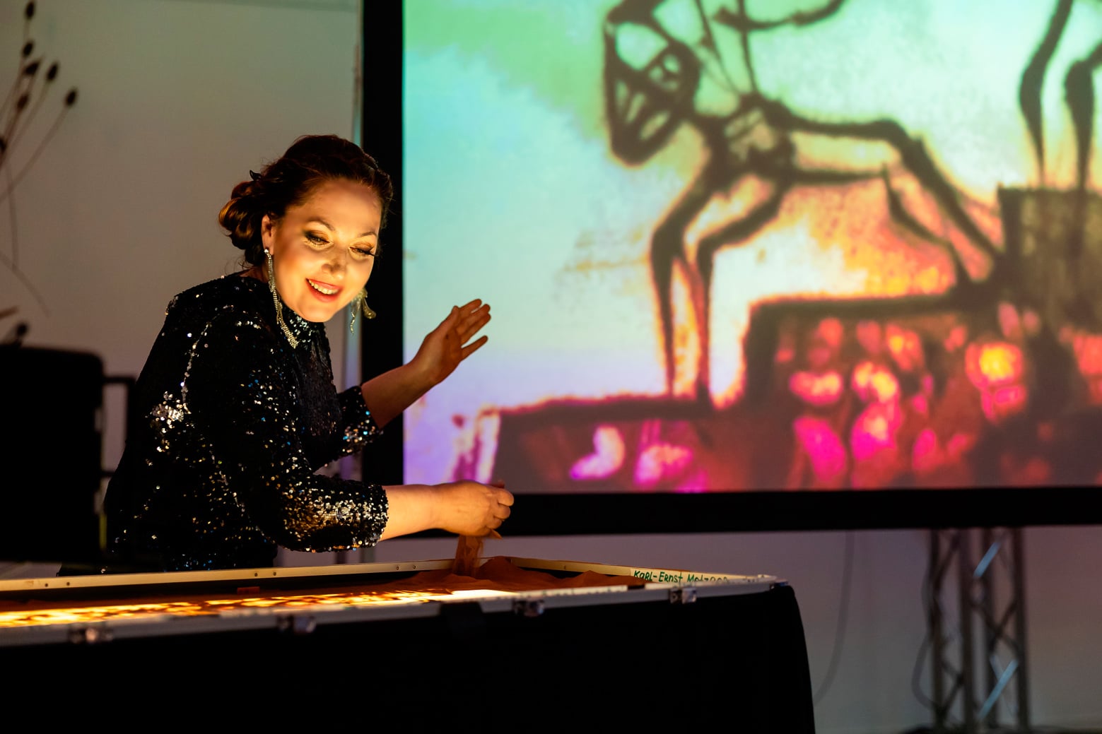 Das Spiel von Sand, Licht und Schatten zieht die Zuschauer in den Bann. Mit anmutigen Handbewegungen, die Bilder auf der Leinwand entstehen lassen, fesselt die Sandkünstlerin an sich die Aufmerksamkeit des Publikums. Die spektakuläre Sandmalerei für Firmenevent wird zu einem unvergleichlichen Erlebnis für Sie und Ihre Gäste!